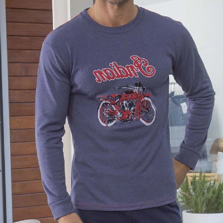 Camiseta de manga larga y cuello redondo. Estampado en el pecho de una moto. Manga con puño.
